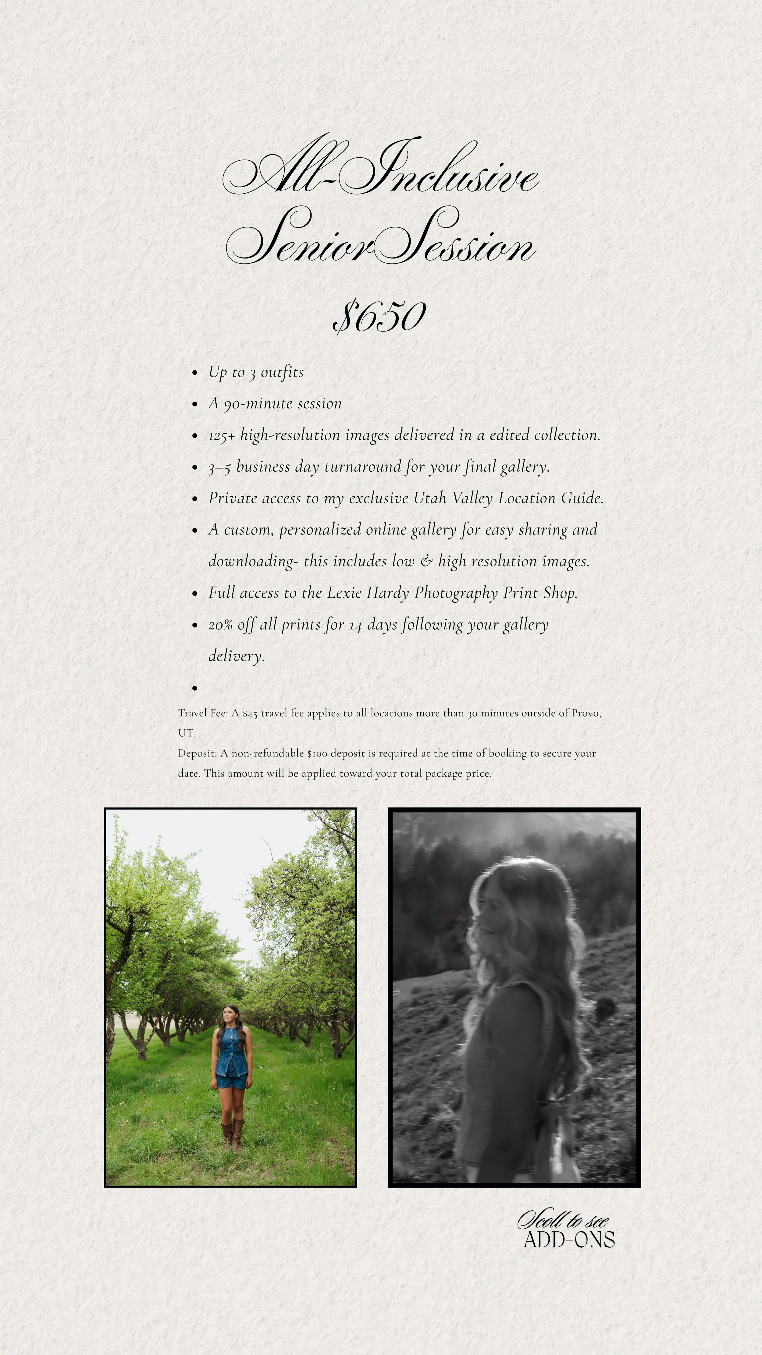 Yes! I provide paper prints, canvas prints, metal prints, graduation cards and much more through the Lexie Hardy Print Shop. Once you receive your photos you will be able to check out all the options that your gallery has to offer you. The prints will then be shipped right to your doorstep.
